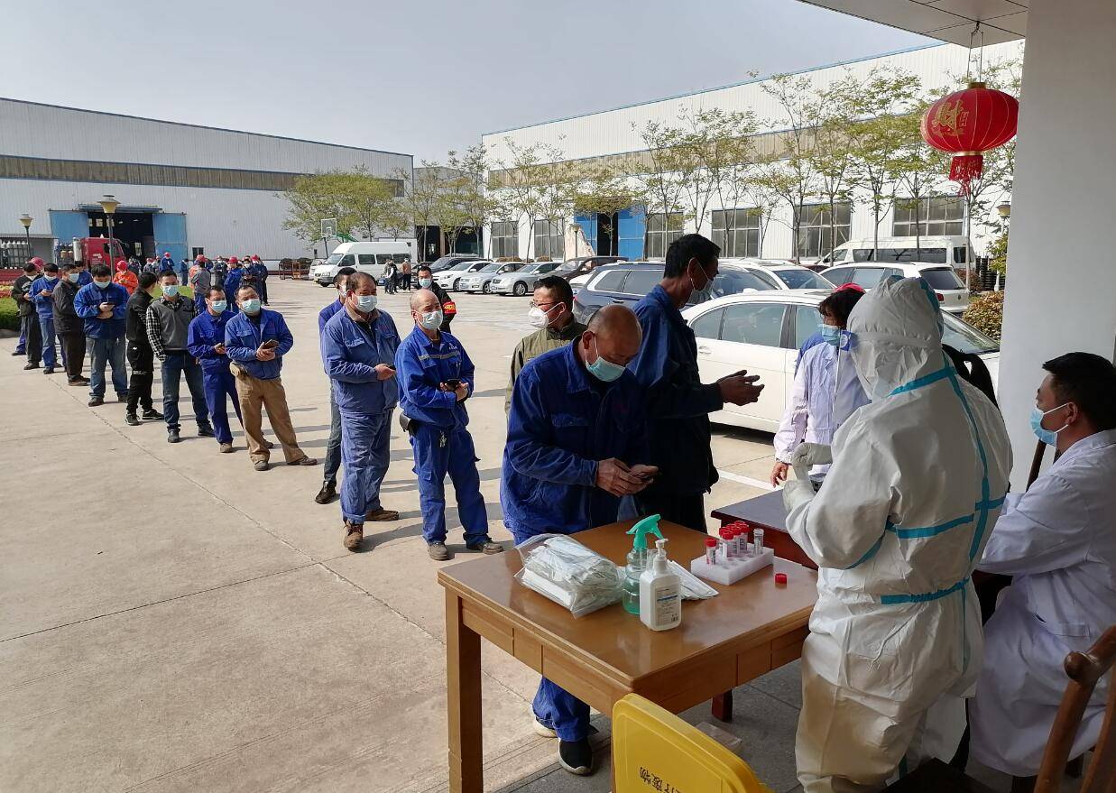 上午9點,核酸檢測工作開始,出示健康碼、測體溫、信息登記、秩序維護等工作緊張有序,檢測過程中,各參檢人員按照公司的統(tǒng)一部署有序進行,受檢職工每10人一組,每人間隔1米,佩戴口罩依次采樣。公司行政部工作人員與支部黨員配合醫(yī)護人員做好現(xiàn)場秩序維護、信息核實登記、定時消毒消殺等組織和服務(wù)保障工作,確保采樣工作有序進行。同時,除了開展全員核酸檢測外,公司積極落實“核酸檢測+疫苗接種”雙保障,按照“應(yīng)接盡接”原則,完成公司全員疫苗接種工作,截至目前,公司職工疫苗已全部接種完畢。